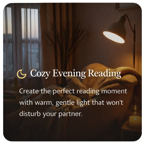 Create a calm, focused reading experience with soft, evenly distributed light that enhances every page. The minimalist design blends seamlessly into your space, turning each reading moment into something truly special. A subtle detail that makes a remarkable difference.